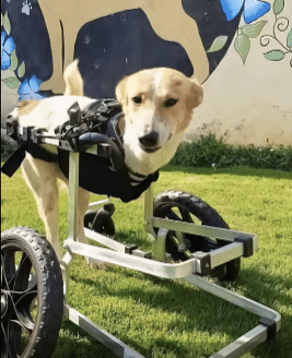 A custom mobility cart was prepared especially for her. On day one hundred, Cleopatra tried her new wheels for the first time.