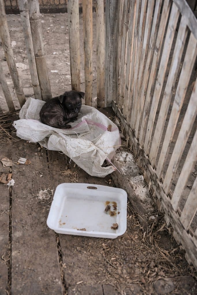 Inside a rice sack, tossed carelessly into the corner, was a puppy.
