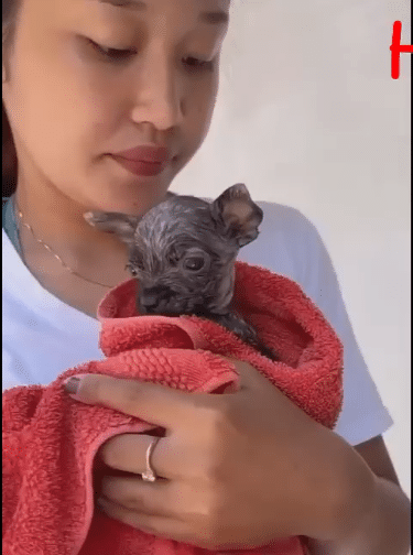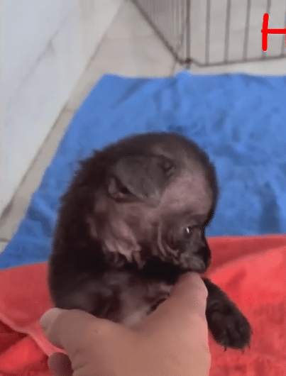 His body trembled. His fur had almost completely fallen out. His skin looked fragile and inflamed. He was so small that at first glance, he hardly looked alive.