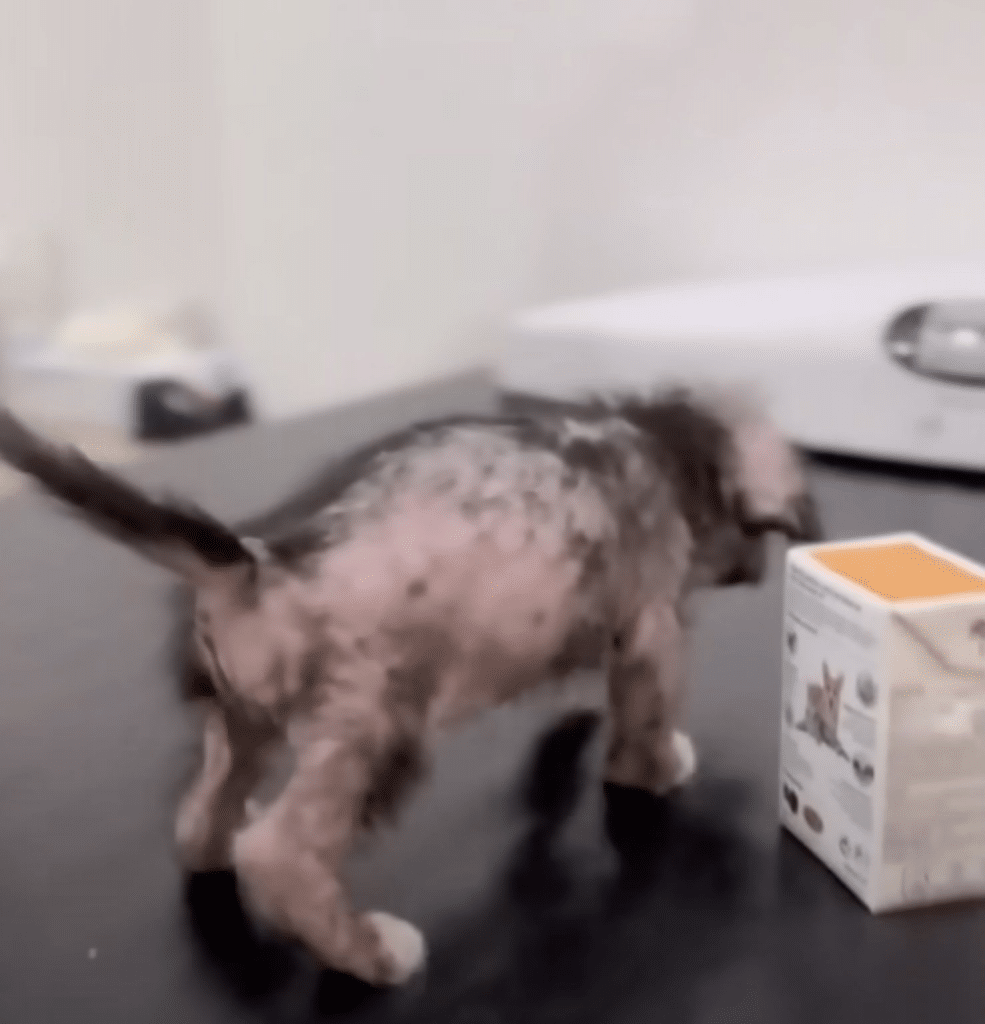 At the clinic, the staff moved quickly and calmly. Cold exposure. Extreme weakness. Exhaustion. The signs were clear. Yet when a nurse brushed her tiny paw, her tail gave the faintest wiggle.