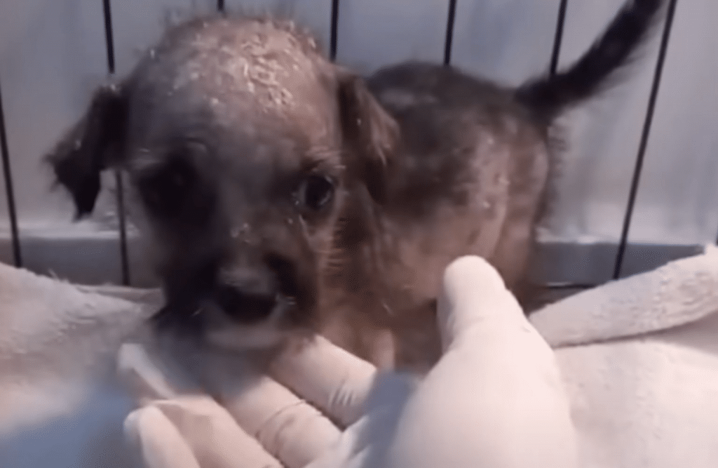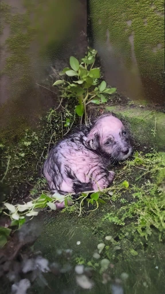 Curled tightly against herself was a tiny puppy, no bigger than a pair of mittens. She lay motionless in the rain, her body trembling from cold and exhaustion. Far too young to be alone. Far too fragile to survive a storm.