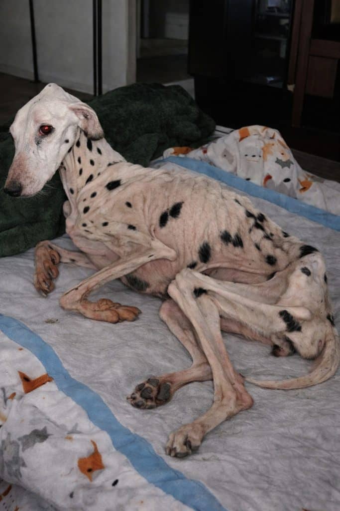 Harvey was just three years old. A Dalmatian meant to be strong, energetic, full of motion. Instead, when he was found, he could barely hold himself upright. His body was painfully thin. His ribs pressed against delicate skin. His legs trembled beneath him.