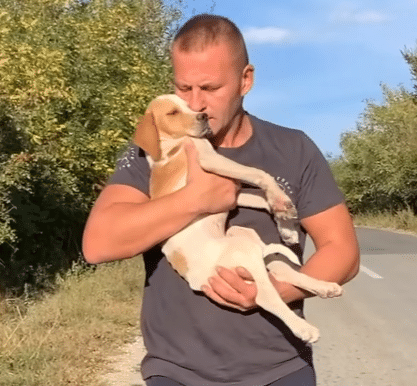 The puppy was painfully thin. His ribs were clearly visible beneath his fragile skin. His eyes were wide, unsure whether the hands reaching toward him meant harm or safety.