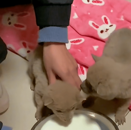 Slowly, one puppy leaned forward. Then the other. They sniffed the bowl. Hesitated.