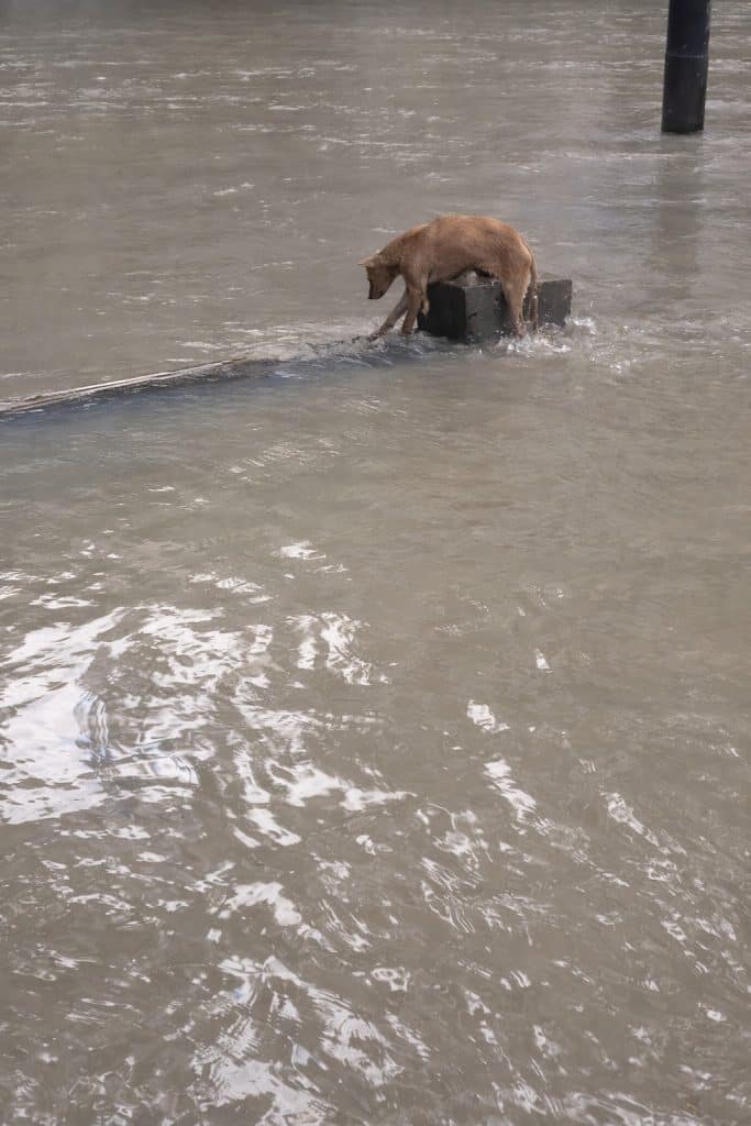 Video: Stranded Dog Jumps From Flooded Wall and Swims Toward Navy Rescue Boat