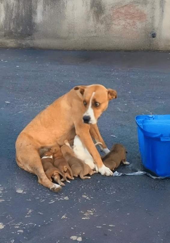 She Stayed in an Empty Parking Lot — Guarding Her Puppies With Everything She Had
