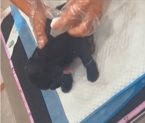 He began with the smallest and weakest of the three—the black puppy. Carefully, he used a warm towel to wipe away layers of dirt and grime. Each movement was slow and patient, mindful of their delicate size.