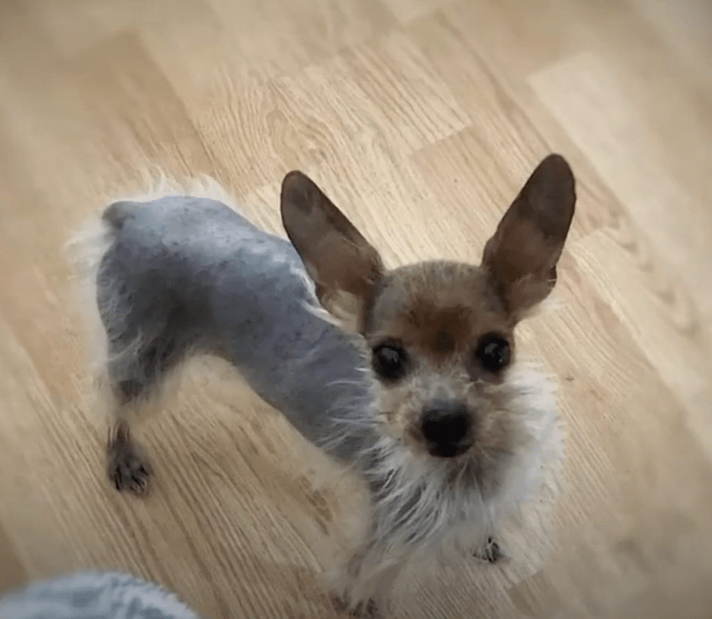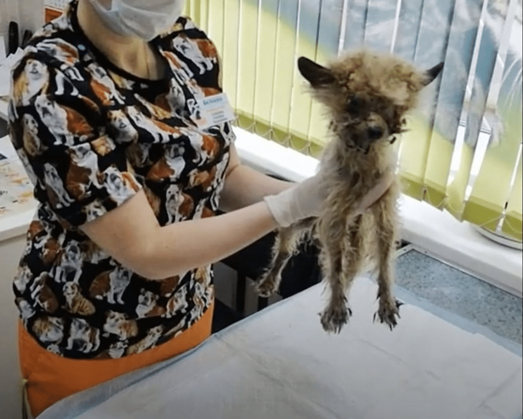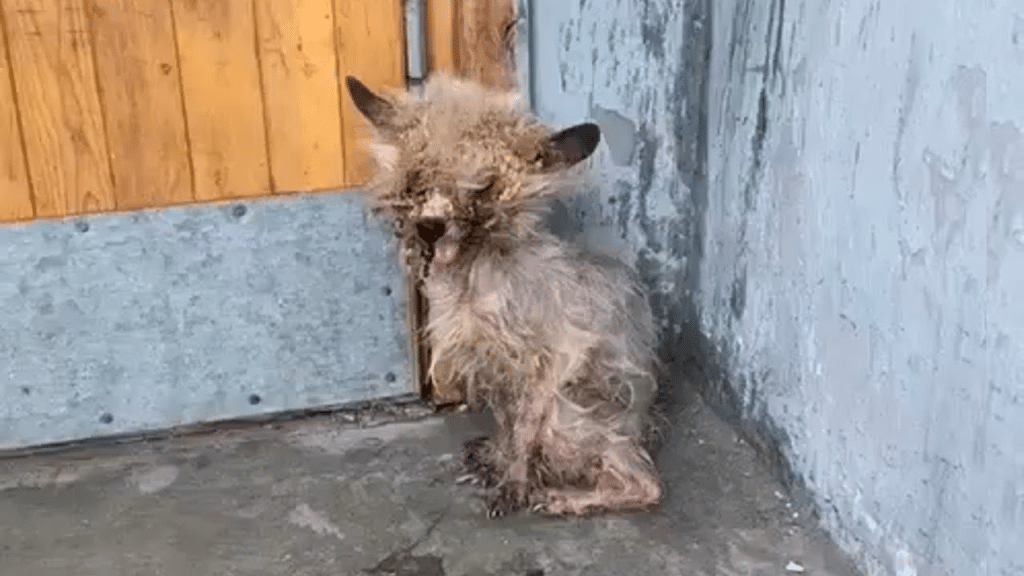 His tiny body was thin and stiff, conserving the last of his strength. His skin was irritated and inflamed, showing through patches of missing fur. Each breath came shallow and uneven. His ribs were clearly visible beneath his skin, a quiet sign of how long he had been struggling.