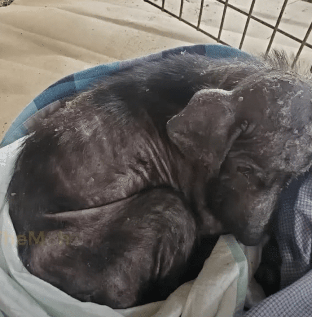 Hattie’s fur was missing in uneven patches, exposing irritated skin beneath. Her ribs were sharply visible, and her breathing trembled with exhaustion and fear. But it was her eyes that told the deepest story—soft, uncertain, shaped by neglect.