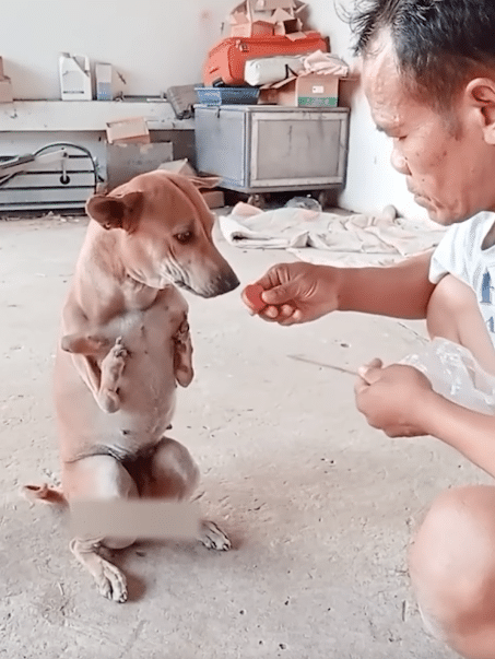 Video: Dog Without Front Legs Stands Proudly While His Dad Feeds Him by Hand