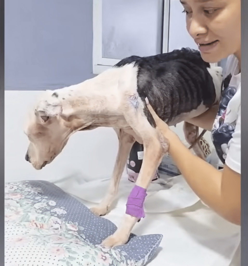 At the veterinary clinic, the urgency was clear. Victoria was severely underweight. Her nails were long and curled, showing she hadn’t walked freely in a long time. Pressure marks on her skin suggested months spent confined. Tests revealed dehydration, anemia, and organs strained by prolonged neglect.