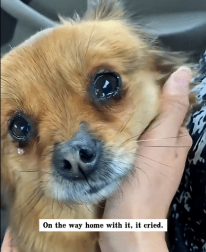 As the vehicle moved toward safety, tears welled up in the dog’s eyes and rolled gently down his face. Whether from stress, relief, or simple exhaustion, the moment was powerful.