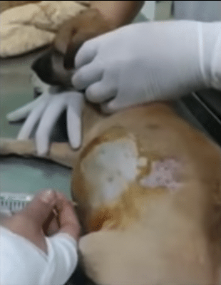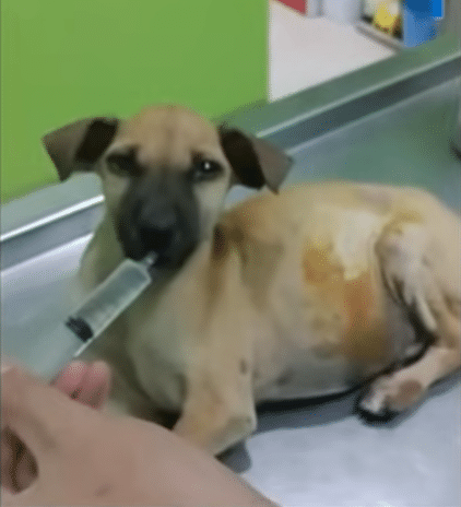 They lifted him gently and rushed him to the veterinary clinic. There, the scale confirmed how tiny he truly was — just 3.75 kg. But the swelling in his abdomen told another story. Something inside him was not right.