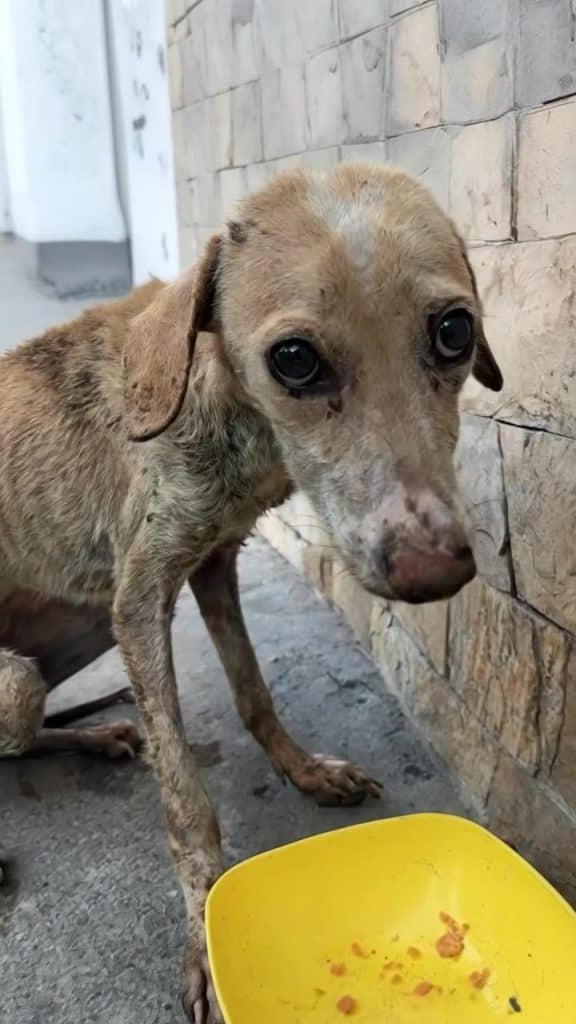 Milagro was severely underweight, her body worn down by prolonged neglect. Her breathing was shallow. Her movements were minimal. And yet, in her tired eyes, there was something unmistakable—a faint spark of determination.