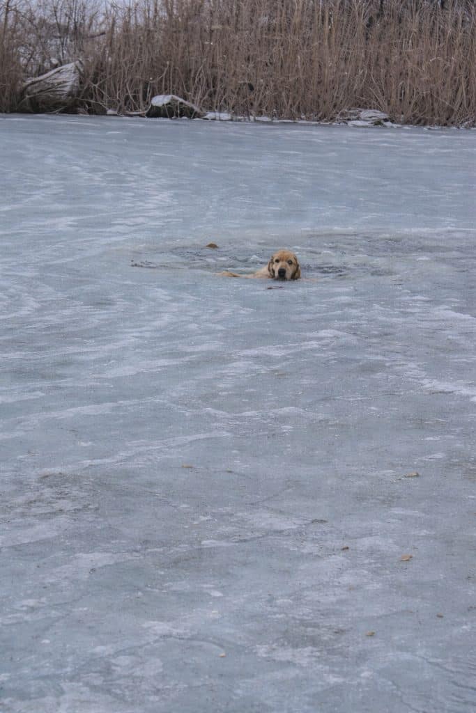 On New Year’s Day, a golden Labrador waited in freezing water.