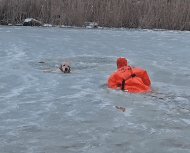 Video: Firefighter Crawls Across Thin Ice to Save Labrador Trapped in Freezing Pond