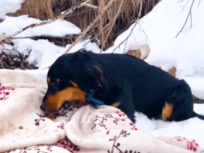Back at home, the frozen dog was warmed gradually — blankets, gentle heat, cautious monitoring. Veterinary care followed to assess possible injuries or frost-related complications.