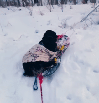 They pulled him slowly through the snow-covered trail, away from the place that might have been his last.