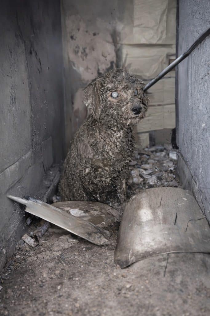 At the bottom, barely visible among the trash and debris, was a small dog.