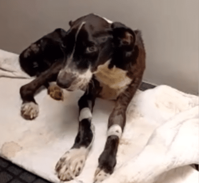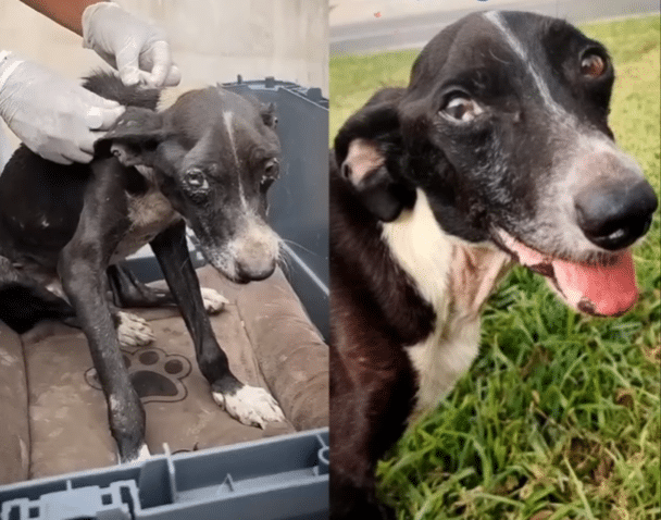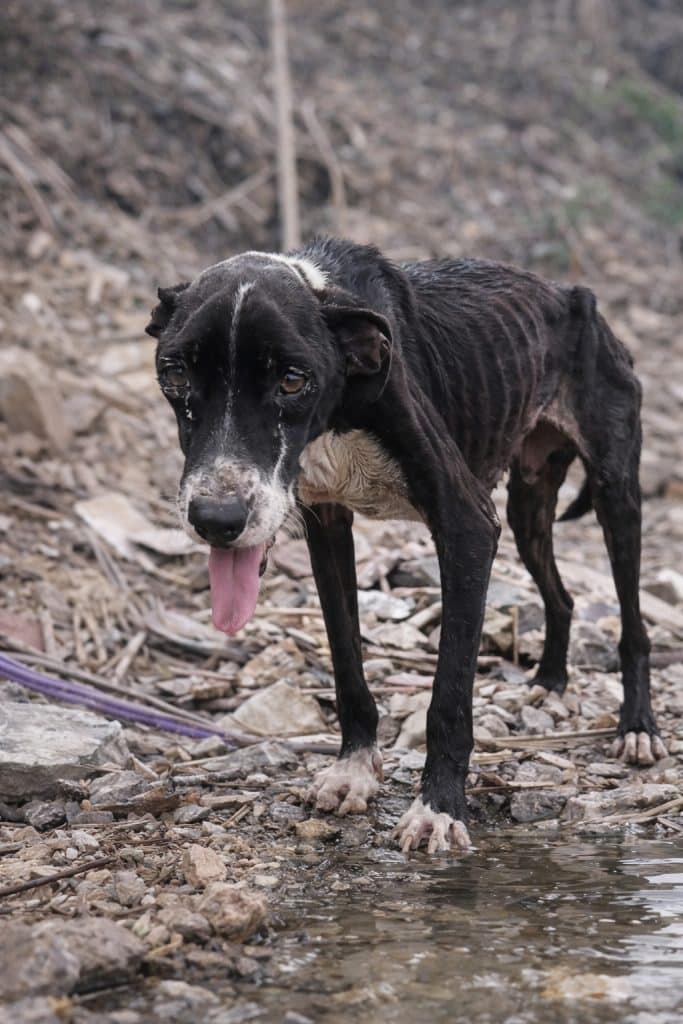 His body was skeletal. His fur was matted with ticks and dirt. Severe dehydration had left him weak to the point where even a gentle touch made him stumble.