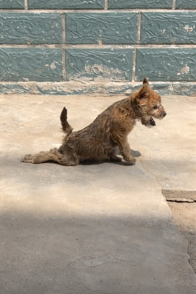 His hind legs were paralyzed, forcing him to rely entirely on his front paws. The constant friction against the ground had left his fur dirty and worn thin. His frame was narrow, his ribs visible beneath unkempt hair.
