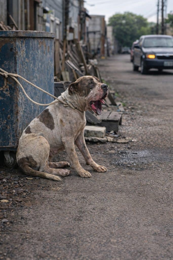 His lower lip and chin had been severely torn. The injury was deep and raw, and it was clear he had been suffering for far too long. No shelter. No comfort. No one to protect him.