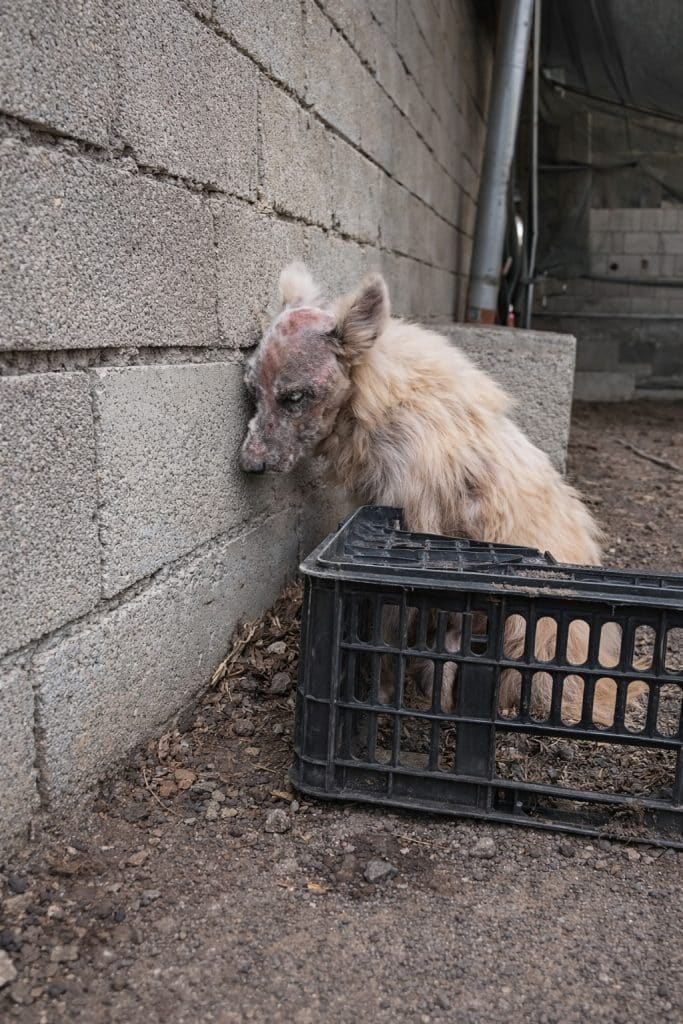 A volunteer veterinarian examined him carefully. Severe hair loss. Full-body skin infection. A fractured leg bone. Extreme malnutrition.