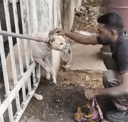 To further protect him and prevent accidental bites during the delicate process, a rescuer gently wrapped cloth around his muzzle as a temporary safeguard. It wasn’t punishment — it was protection for all involved.