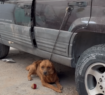 When the rescuers arrived to collect him, Mestizo was hiding beneath a parked SUV — still tethered, still uncertain.