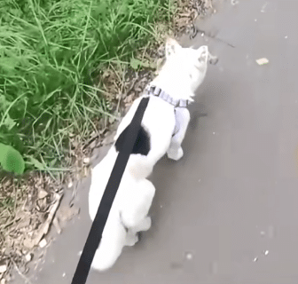 By the time the video begins, she is a small white dog with black patches, darting between old garage buildings, her body low to the ground, eyes scanning constantly.