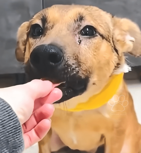 The fear in his expression softens. He starts responding to gentle voices. Soon, he is seen standing more steadily.