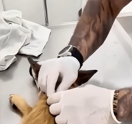 With steady hands, they carefully removed the tape — layer by layer — making sure not to injure her further.