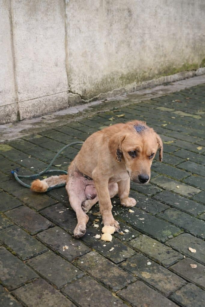 The dog was critically weak. His breathing was shallow. He barely responded to touch.