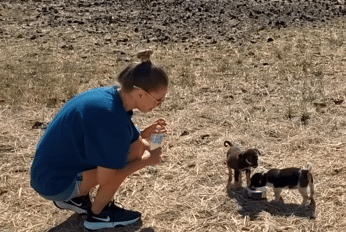 Before anything else, they offered small amounts of water. Not too much at once — just enough to prevent shock. The puppies drank eagerly but gently, as if unsure whether it would be taken away.