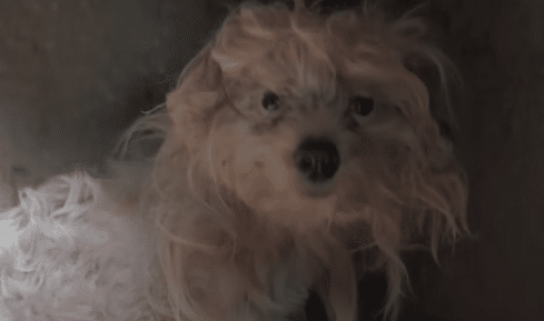 The small dog had been abandoned there, left to survive in a narrow space cluttered with debris. His fur was so severely matted that it clung to him like armor. Dust, trash, and hardened tangles covered his tiny frame.