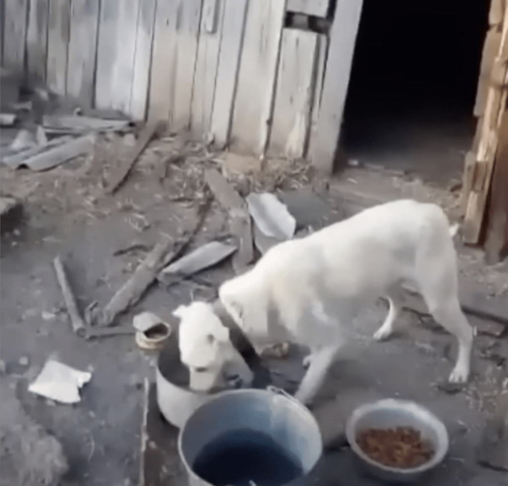 Nearby, empty bowls lay overturned on the floor. A cracked container that once held water sat bone dry. Bely was not fed every day—only a few times each month. Just enough to keep him alive.