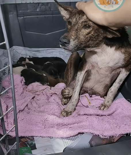 The puppies were gently dried and placed beside their mother on soft bedding. For the first time in what may have been days, she could rest without scanning the darkness for danger.