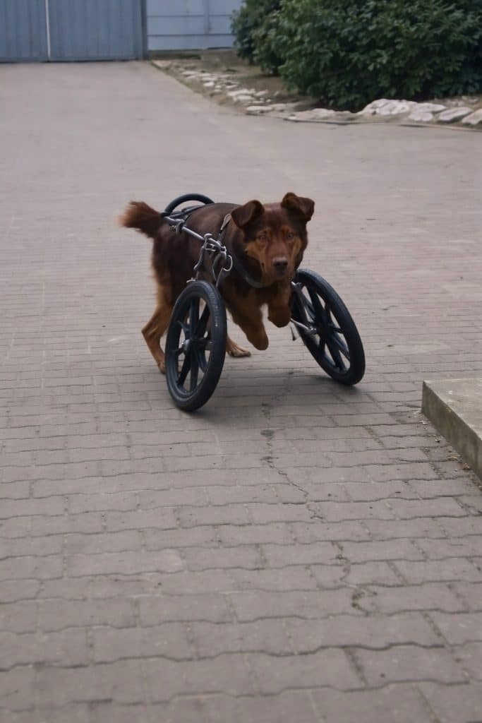 To help Jack regain mobility, a custom-designed wheelchair was created specifically for his condition. It supported his body at the front, allowing him to move using two wheels where his legs once were.