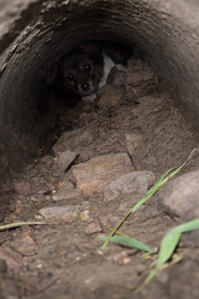 There, deep within a narrow pipe, was a tiny puppy pressed against the darkness.
