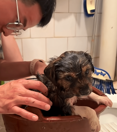 But beneath the grime was another problem — fleas and parasites clung to his tiny body. The family carefully cleaned him, making sure he was comfortable and safe.
