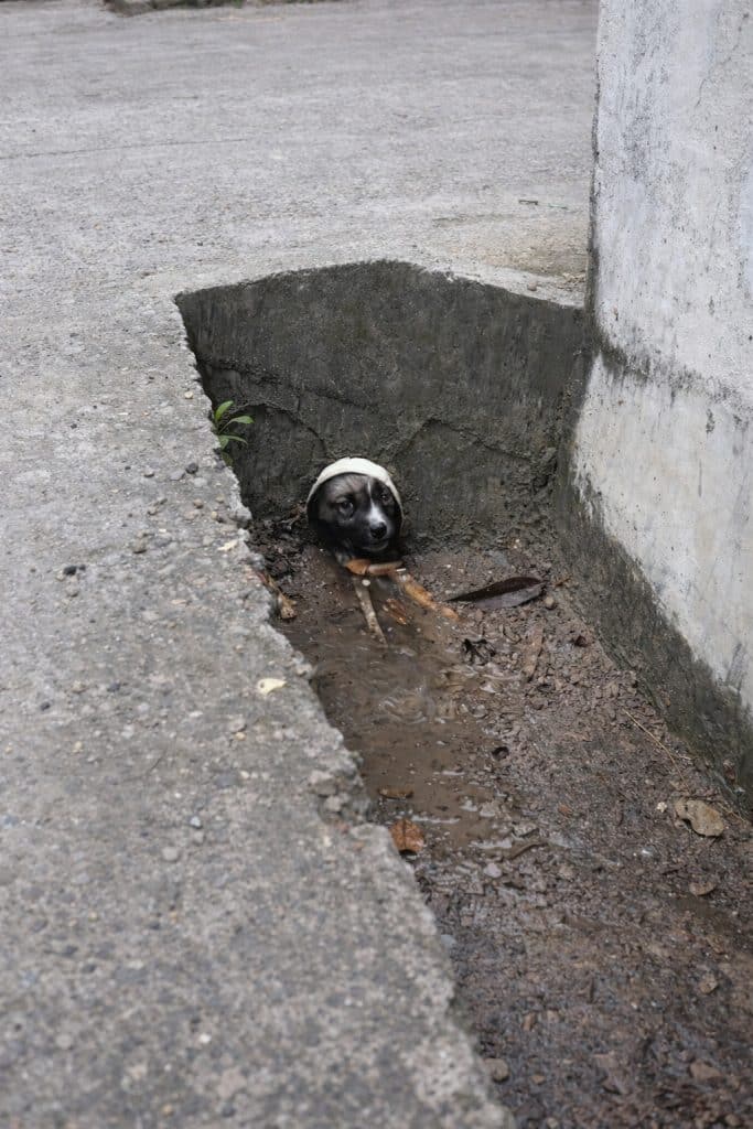 Just days later, the rescuer discovered more puppies nearby — trapped inside a small cave-like hole, their exit partially blocked.