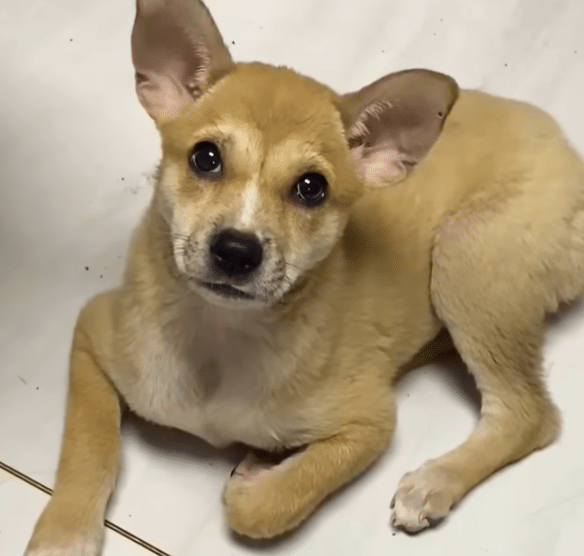 When the camera turned toward the sidewalk, he was already pressed against a wall, curled into himself as though trying to disappear. His legs shook. His head hung low. And the soft sounds coming from his throat were not barks — they were small, strained whimpers.