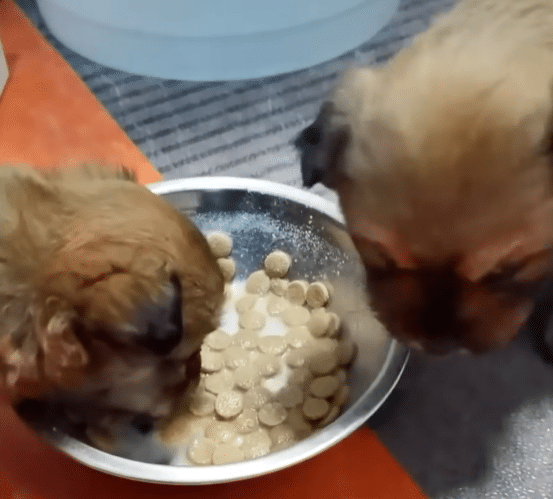 Both puppies weighed over three jin (just over three pounds). They tested negative for serious illnesses such as canine distemper and parvovirus. The veterinarian confirmed they were local mixed-breed dogs — sturdy, resilient, and remarkably strong.