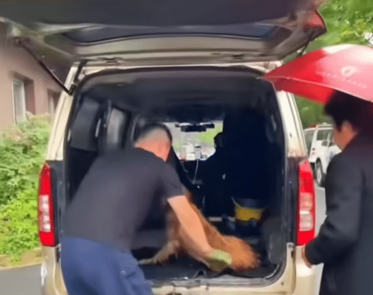 When he arrived, he didn’t rush. He approached gently, lifting the exhausted dog with care and placing him inside the vehicle.