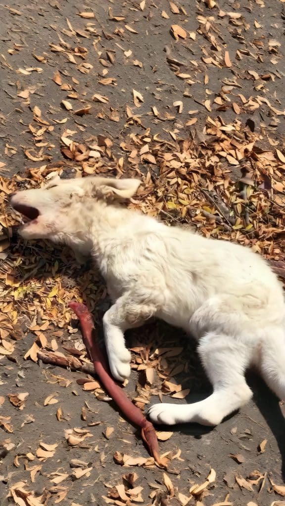 When rescuers first heard about a small white puppy lying near the roadside, no one imagined how much resilience could exist in such a young life.