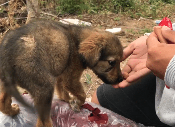 A stranger reached out to a rescue team, saying a small puppy had been wandering alone along a quiet dirt road. The area was known for scattered trash and abandoned lots — not a place where a young life should be left to figure things out alone.
