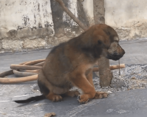 A small puppy, thin and unsteady, wandering through a pile of waste. His ribs showed through his coat. His hind legs appeared weak — possibly affected by a congenital issue — making each step cautious and uneven.