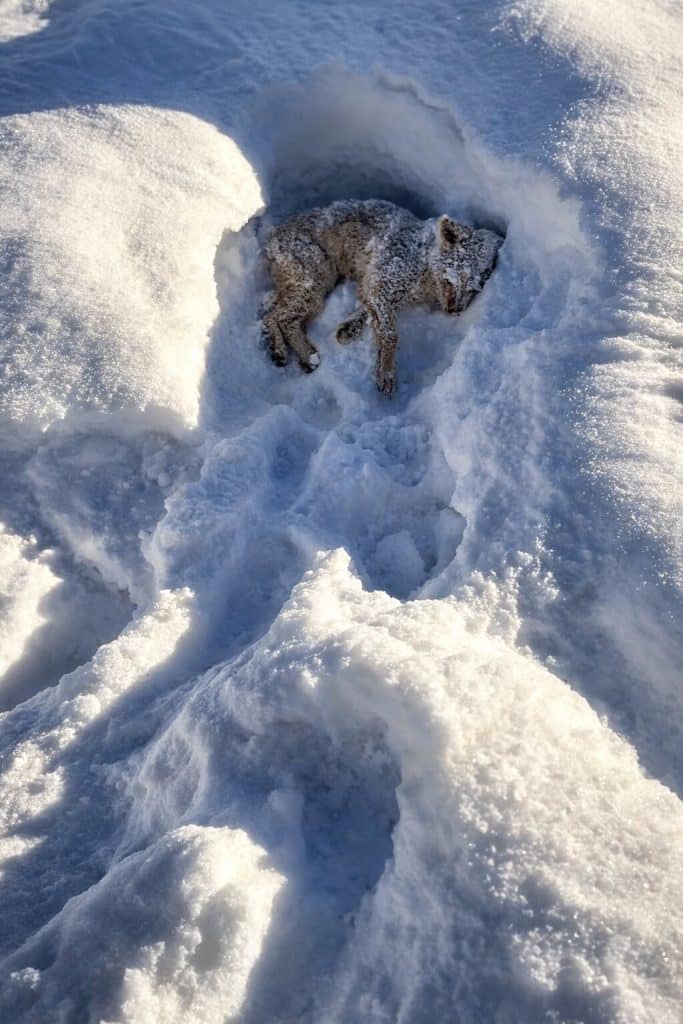 At first, it looked like nothing more than a small lump beneath the frozen surface. But when they moved closer, they realized it was a dog — lying motionless, almost completely buried in the snow.