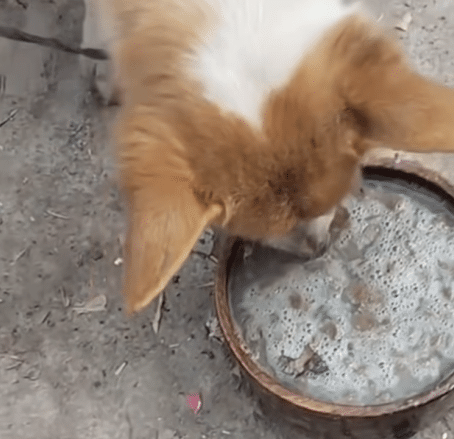 Without regular food or water, the dog had been forced to survive however he could. At one point, he lowered his head and licked muddy water from the ground — the only source of moisture he could reach.