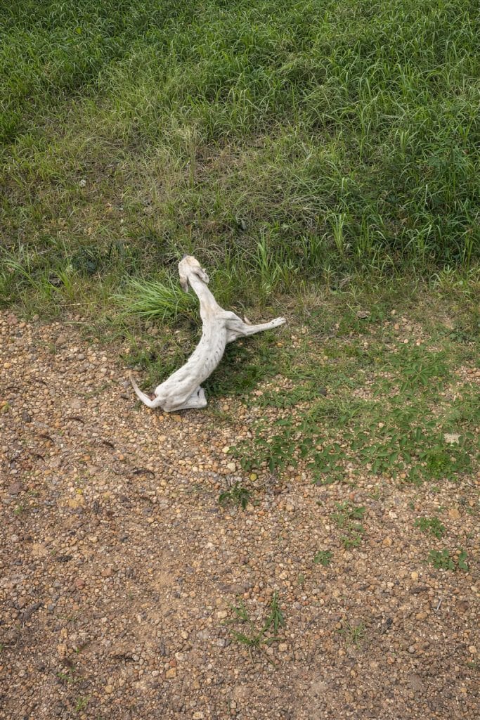 There were no houses nearby, no familiar sounds of people passing through. In the middle of that lonely area lay a dog so thin it was difficult to believe he was still alive.
